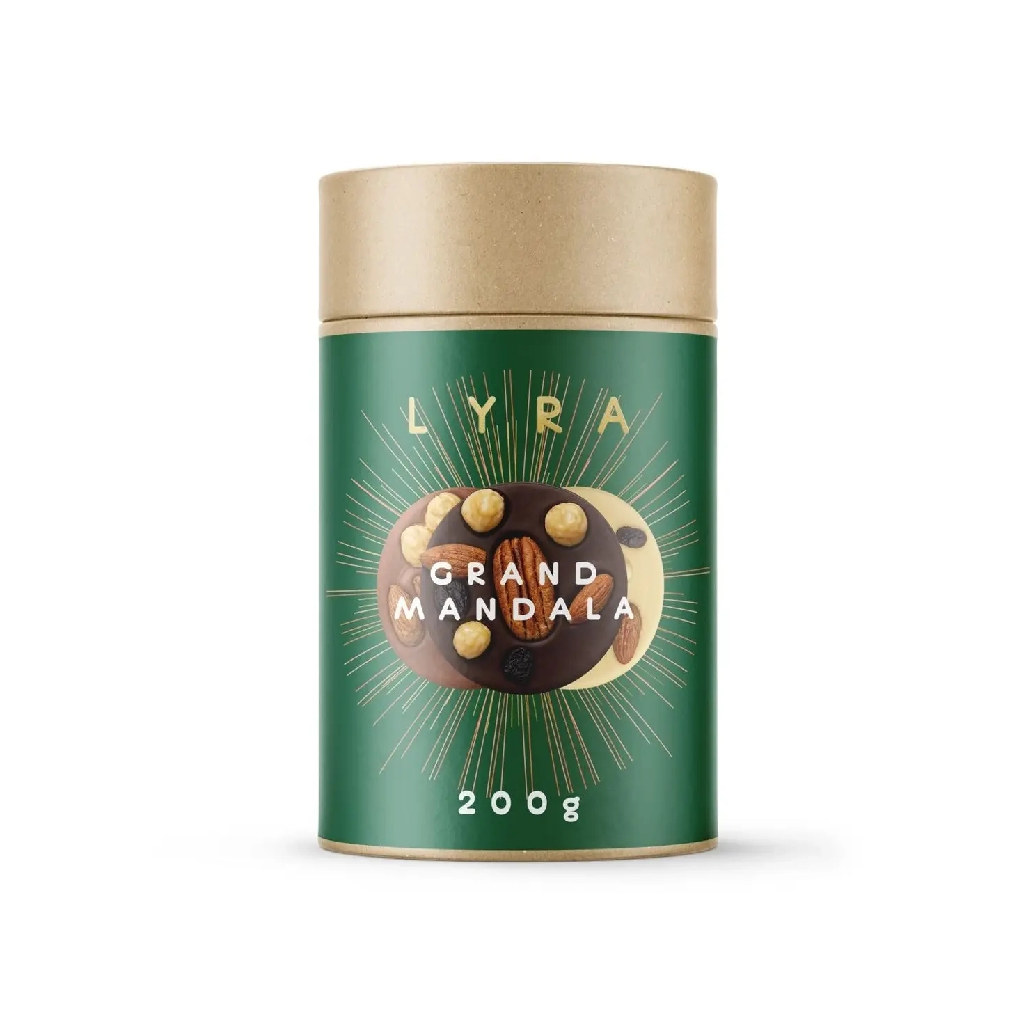 Horká čokoláda (25 %) (kakaová hmota, cukor, kakaové maslo, vanilkový extrakt), mliečna čokoláda (37,5 %) (kakaové maslo, cukor, sušené plnotučné mlieko, kakaová hmota), biela čokoláda (37,5 %) (cukor, kakaové maslo, plnotučné sušené mlieko, emulgátor: sójový lecitín, vanilková prírodná aróma); posyp (29 %) (pekanové orechy (4,1 %), pražené lieskové oriešky (8,3 %), pražené mandle (8,3 %), sušené hrozienka (8,3 %)).