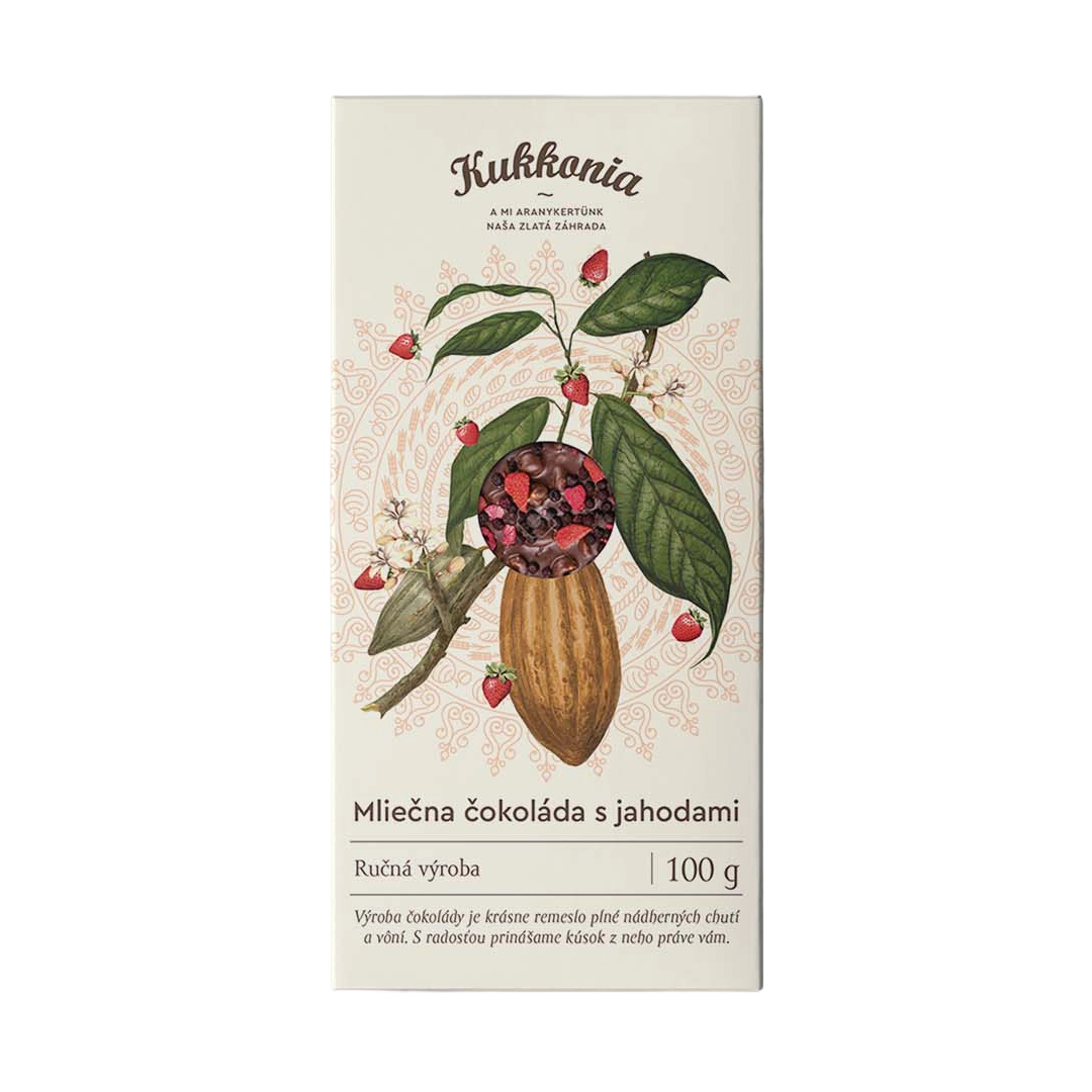 -20%Ručne vyrábaná mliečna čokoláda s jahodami. Kakaová sušina, ktorá tvorí najmenej 33,6 % mliečnej čokolády, dokonale ladí so sladkou chuťou jahôd.